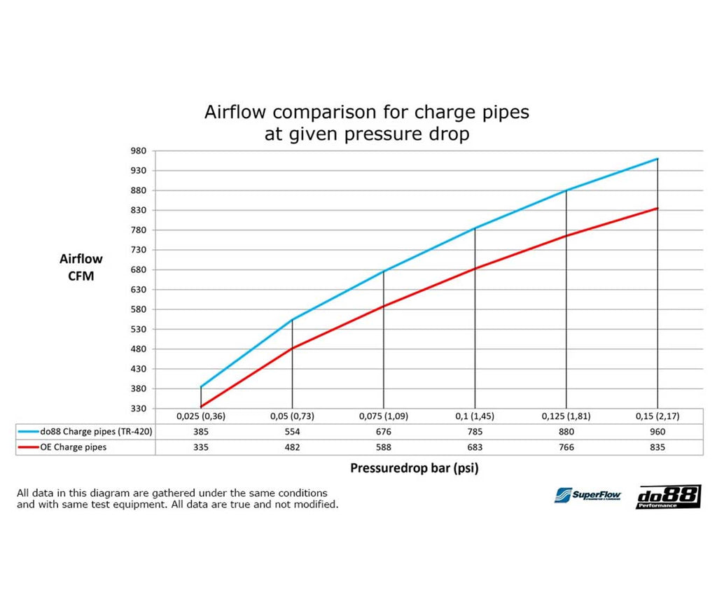- Achieves a flow rate of 960 CFM @ 150mbar (2.17psi), offering a substantial improvement over the OEM’s 835 CFM.